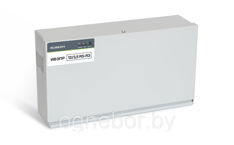 Источник обеспечивает стабильное круглосуточное электропитание оборудования систем охранной и пожарной сигнализации номинальным напряжением 12 В постоянным током до 3,5 А. Для увеличения времени резервирования к источнику может подключаться необходимое количество внешних боксов резервного питания БР 12 производства «Рубеж».