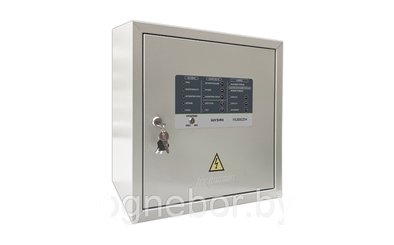 Шкаф управления пожарный ШУН/В-R3 предназначен для управления электродвигателями дренажного насоса, жокей-насоса, насоса пожаротушения и вентилятора приточно-вытяжной вентиляции или вентилятора дымоудаления в адресных системах под управлением приемно-контрольного прибора «Рубеж-2ОП» прот.R3 или автономно.