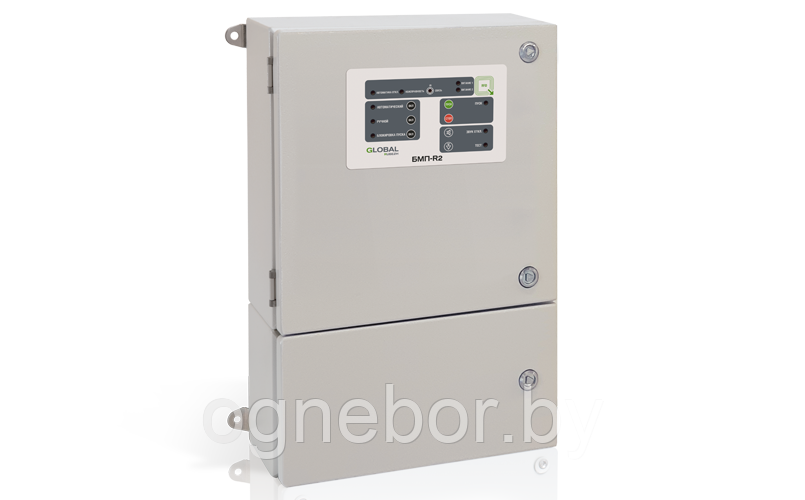 Питание БМП-R2 осуществляется от внешнего ввода питания и встроенного источника резервного электропитания с аккумуляторной батареей напряжением 12 В, емкостью 18 А·ч. Емкость батареи рассчитана на 24 часа непрерывной работы БМП-R2 в дежурном режиме и 1 час в режиме пожаротушения.